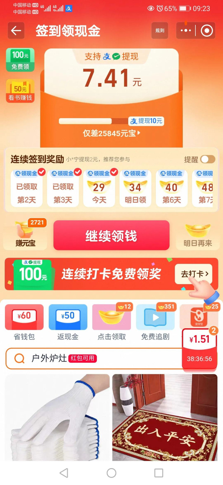 这里既是追直播的热闹场,也是薅羊毛的小天地:领福袋、抢购美食券,我曾在线下门店提过用直播间买的甜品,性价比确实惊喜。赚钱方式也更丰富,除签到外,还有一键领金币、逛街任务、开宝箱等,单日提现0.3元,同样支持攒至15元提现,边玩边省的感觉很实在。