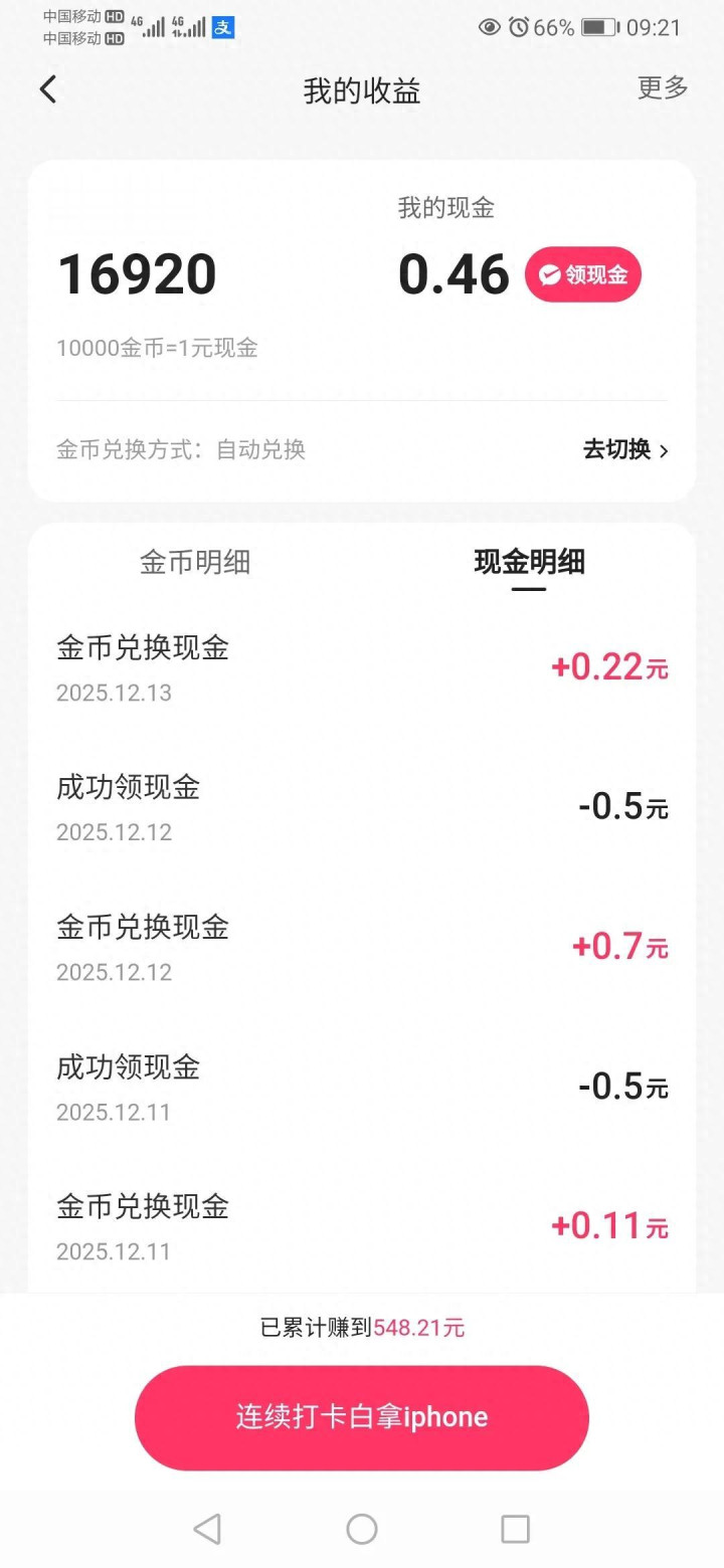 夜晚卸下疲惫后,我最爱用它刷短剧和短视频——轻松的内容像给大脑按了“暂停键”,瞬间松弛下来。更贴心的是,通过每日签到、观看视频等简单操作能赚金币,金币可兑换现金(单日提现0.5元,或攒至15元再提),零钱虽少却添了几分小期待。